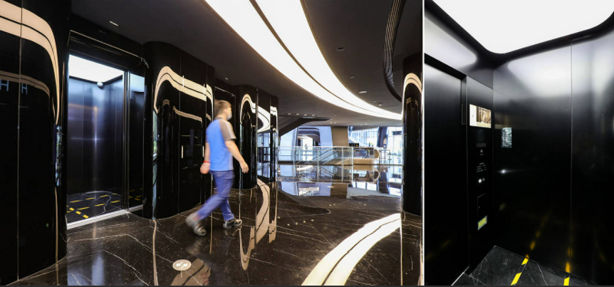 日立电梯为该项目提供19台电扶梯,其中包括8台双轿厢电梯。